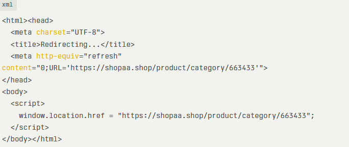 Структура подставных страниц была однотипной: внедрённый JS-редирект в кэше, замаскированный под легитимный трафик.